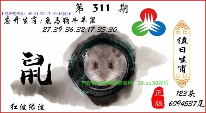 309期【绝杀三肖】👣【牛狗虎】🐾开鼠06中